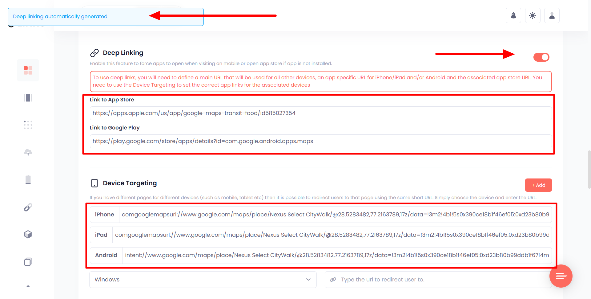 Linko makes creating deep links easy. It analyzes the destination URL and generates automatic deep links for iOS and Android.