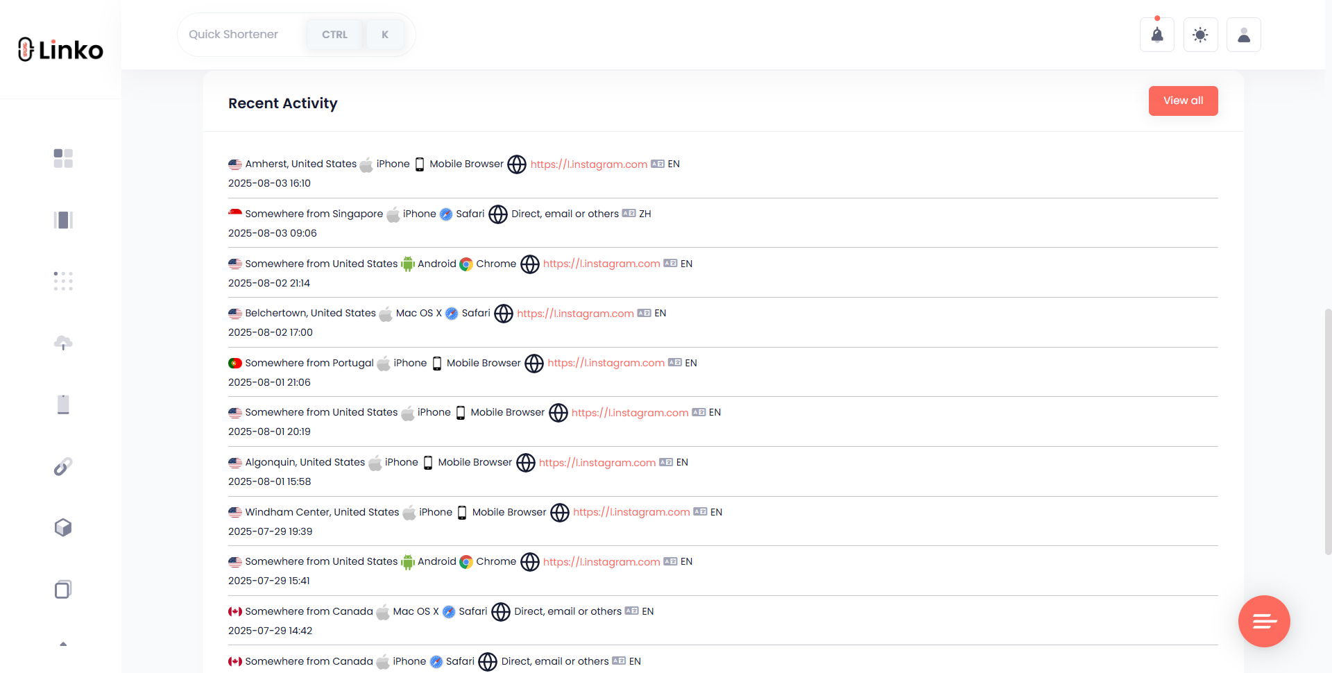 With a tool like Linko, you can create a trackable short link in seconds and view detailed analytics, including location data, in your account dashboard.